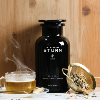 Dr. Barbara Sturm hat ihre ärztliche Laufbahn der Behandlung und Verringerung von Entzündungen in Haut und Körper gewidmet. Stress ist ein wesentlicher Entzündungsauslöser für Immunreaktionen, der das „Kampf- oder Flucht“-Hormon Cortisol verstärkt. Die entzündungsfördernden Auswirkungen von Cortisol auf das Immunsystem wirken sich negativ auf unsere Haut aus. Übungen wie Meditation können Stress und Ängste reduzieren, es gibt aber auch natürliche pflanzliche Inhaltsstoffe, die unsere Stimmung und unser Wohlbefinden unterstützen. Bei koffeinfreiem Tee zum Beispiel wurde in Studien nachgewiesen, dass er den Cortisolspiegel senkt. Dr. Sturm hat ihre Nahrungsergänzungsmittel-Kollektion STURM INSIDE lanciert, um zusammen mit der Hautpflege für eine gesunde, jugendliche Haut zu sorgen, und stellt nun die nächste Stufe ihres wohltuenden Self-Care Ansatzes für Hautpflege vor: SKIN TEA MOLECULAR INFUSION.