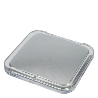 Dieser eckige Klappspiegel aus Kunststoff sorgt mit seiner schönen Einfassung in Acryl und Silber für tolle Make-Up-Ergebnisse. Die zwei verschiedenen Vergrößerungen, 15-fach und 1-fach, lassen Sie das Make-Up stets gründlich und präzise anbringen. Der praktische Magnetverschluss hält Verschmutzungen des Spiegels fern. Abmessungen: 8,5 x 8,5 cm.