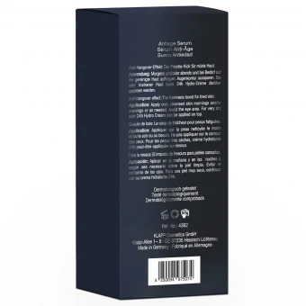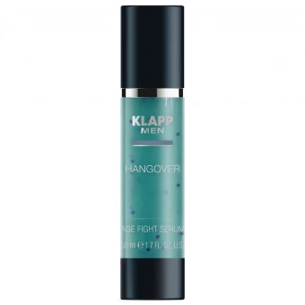 Schlafmangel, Müdigkeit, Erschöpfung, Schwellung, Falten, schlaffe Haut: Das KLAPP MEN Age Fight Serum mit Anti-Hangover-Effekt mit Grünem Kaffee, Hyaluronsäure, Birkensaft, Kombuchka und dem Extrakt des persischen Seidenbaums wirkt als Frische-Kick bei Katerstimmung, macht müde Haut munter und kann die Ausstrahlung potenzieren.