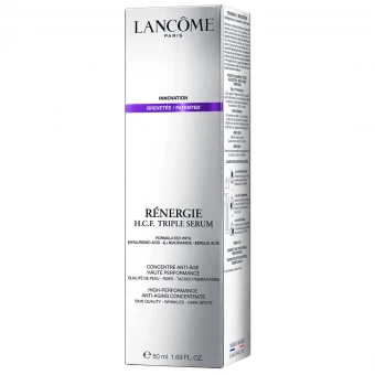 Das Rénergie H.C.F. Triple Serum von Lancôme ist ein hochwirksames Anti-Aging-Serum für straffere und ebenmäßigere Haut. Es regeneriert die Haut tiefenwirksam und verbessert die allgemeine Hautqualität. Dank der innovativen 3-Phasen-Technologie treffen Hyaluronsäure, Vitamin C kombiniert mit Niacinamid sowie Ferulasäure erst beim Auftragen aufeinander. Dabei wird die Haut intensiv mit Feuchtigkeit versorgt und aufgepolstert. Gleichzeitig erscheint der Teint ebenmäßiger und glatter, während die antioxidative Ferulasäure freie Radikale neutralisiert und vor umweltbedingter Hautalterung schützt.