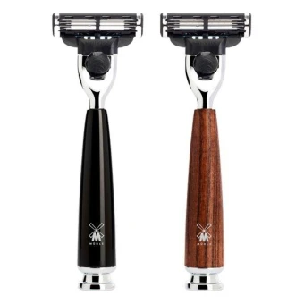 Weltweit ist das Gillette®-Mach3®-System eines der am häufigsten verwendeten Rasiersysteme. Drei übereinander angeordnete Klingen garantieren eine schonende und gründliche Rasur. Die Klingen sind überall im Handel erhältlich. Nassrasierer von MÜHLE sind kompatibel mit den Systemen Gillette® Mach3® und Mach3® Turbo.