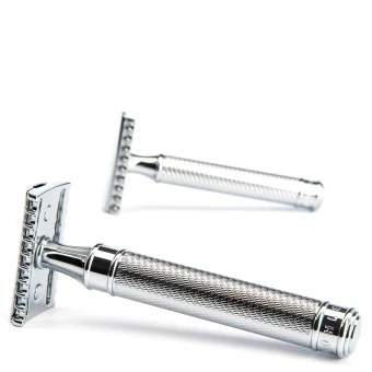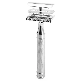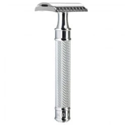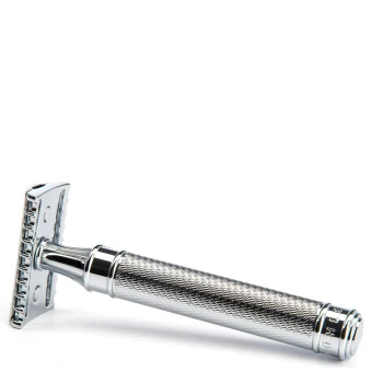Noch traditioneller ist nur das Rasiermesser: Für den MÜHLE Rasierhobel mit offenem Zahnkamm bedarf es eindeutig Fingerspitzengefühl. Die vergleichsweise breite Zahnung und eine flache Positionierung der Klinge bewirken eine äußerst direkte und offensive Rasur – drahtigere und längere Barthaare lassen sich somit leichter erfassen und abschneiden. Für Fortgeschrittene und Profis, die beim täglichen Pflegeritual genau wissen, was sie tun.
